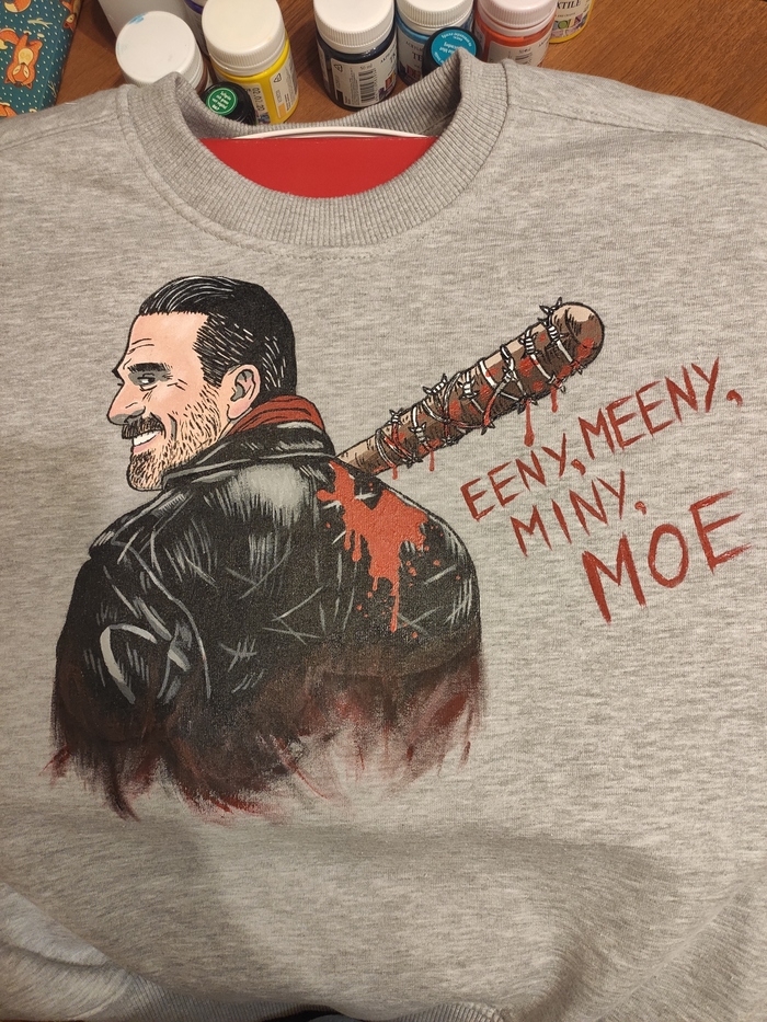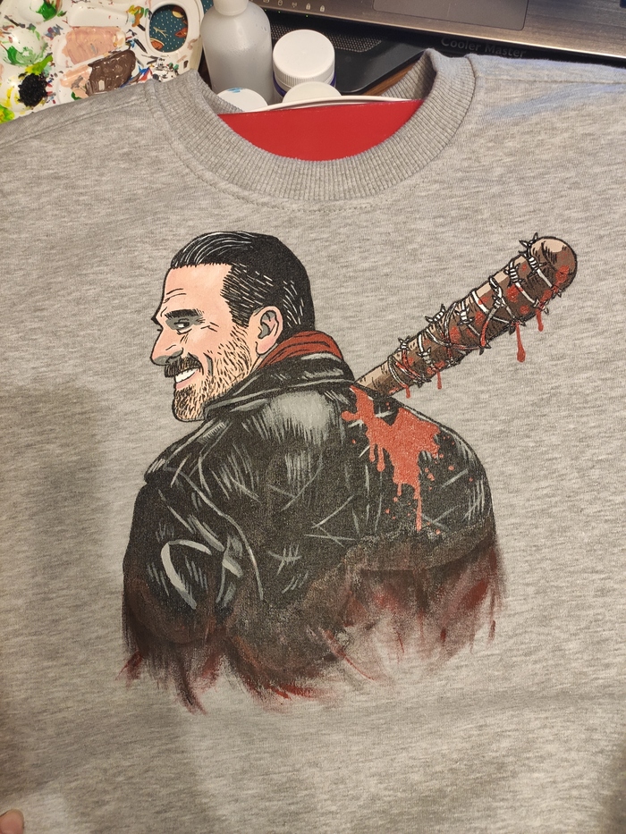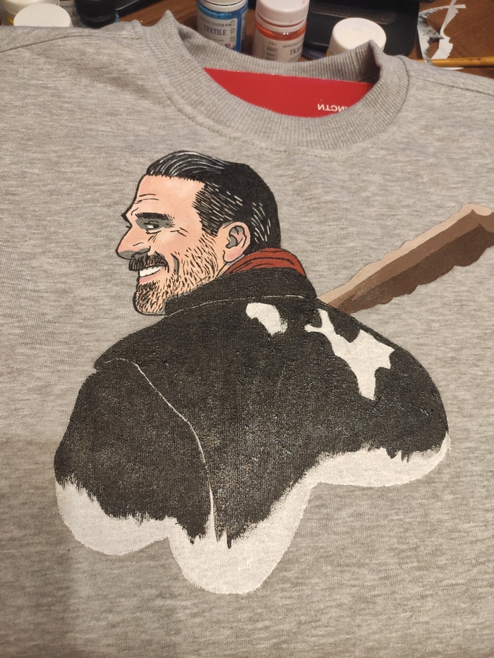 Для того, чтобы, так сказать, прочувствовать персонажа, я включила на фон сериал "Ходячие мертвецы" как раз с той серии, где появляется Ниган. А дальше, как в тумане)