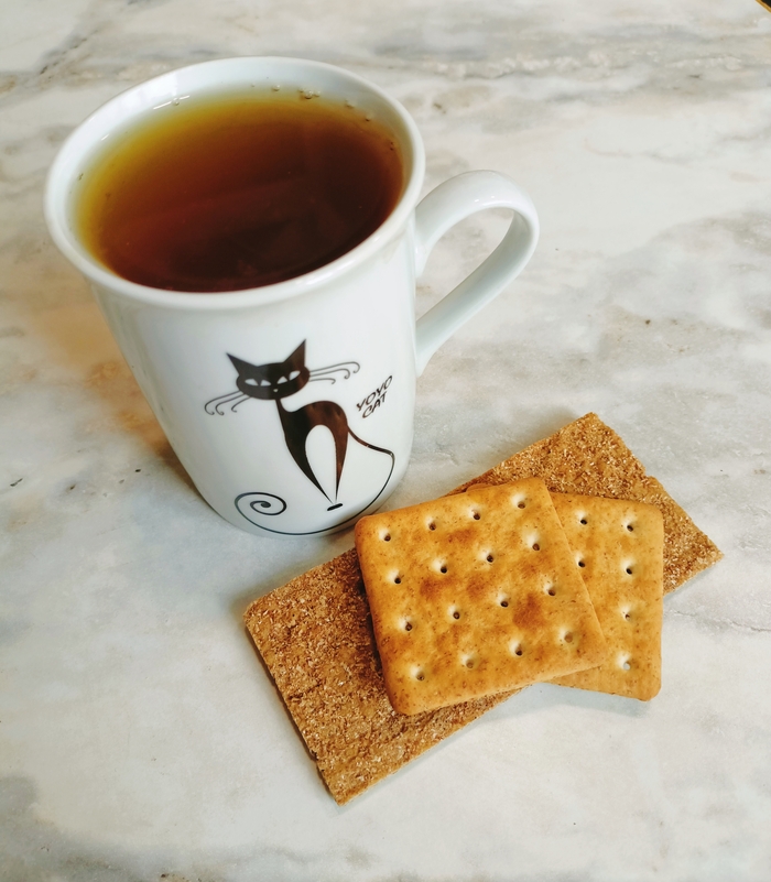 Завтрак ржаной хлеб или галета, чёрный кофе