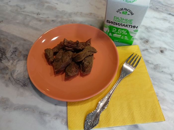 И подошло время ужина.. как и в оригинале, это отварная говядина, кефир заменила на более подходящее под мой вкус, поскольку жирность кисломолочного продукта в оригинале не указана. В упаковке 450 мл, будет на 2 раза)