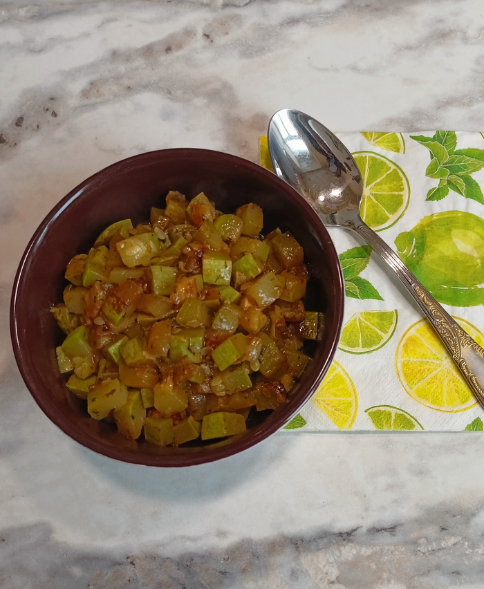 На обед я выбрала кабачки (наверное не представляю баклажан без чесночка и сыра😁), у меня был один примерно на 450 гр. Нарезала некрупными кубиками, несколько минут обжарила на сильном огне, потом добавила зелень и паприку, накрыла крышкой и на медленном дотушила до готовности.