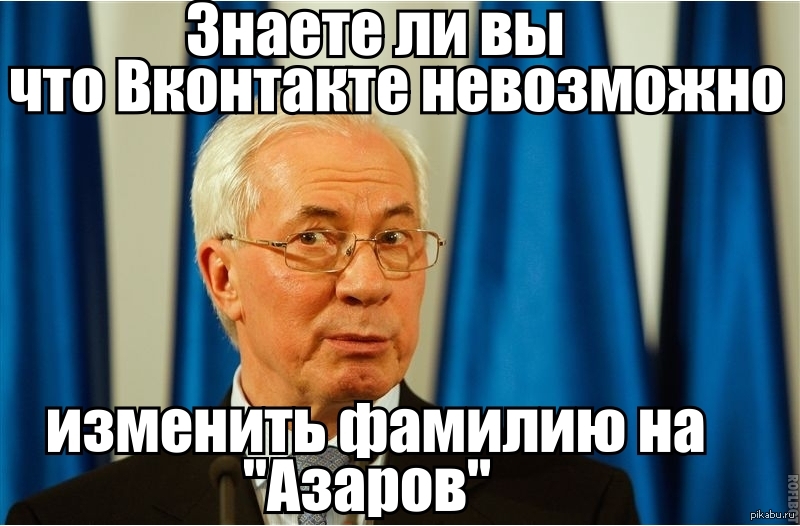 copypast 11 лет назад Ты не можешь сменить фамилию ВК на... Продолжим развод ВК :D ВКонтакте Смена фамилии Николай Азаров