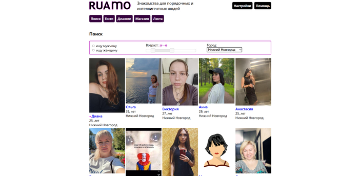 Широкая база русскоязычных пользователей: сочетание локального поиска по Нижнему Новгороду и возможности расширить круг за счёт региональных и зарубежных анкет; удобны фильтры по интересам и фото, есть дополнительные опции для проверки профилей.