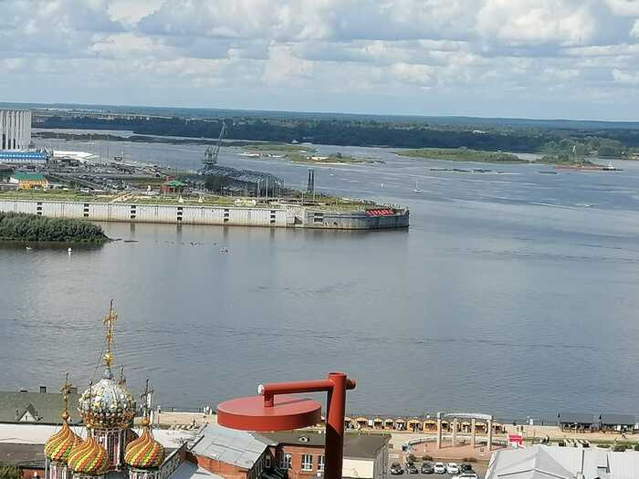 Место где Ока впадает в Волгу. Отсюда открывается великолепный вид на всю красоту двух рек, стадион и Собор святого благоверного князя Александра Невского