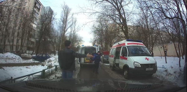 Еду себе по междомовому проезду. Заметьте - не по дворам, а по приличной дороге, которая у нас два шоссе соединяет. Справа - припаркованные машины, слева газон с сугробами, а впереди - опа. Стоит два красных креста, перегородив проезд, а водители копаются внутри, периодически что-то носят из машины в машину. Не торопясь.