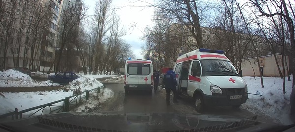 Вот так выглядит. Проехать нельзя. Хотя справа от меня - свободное для парковки место. Вторая скорая спокойно может встать туда и никому не мешать.