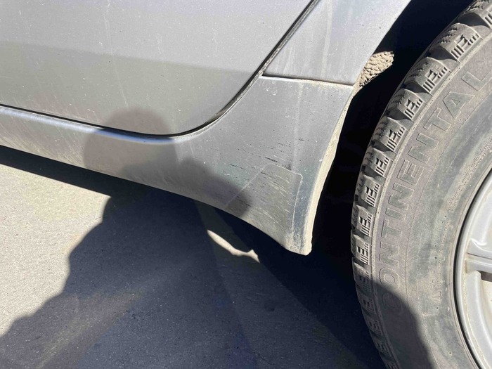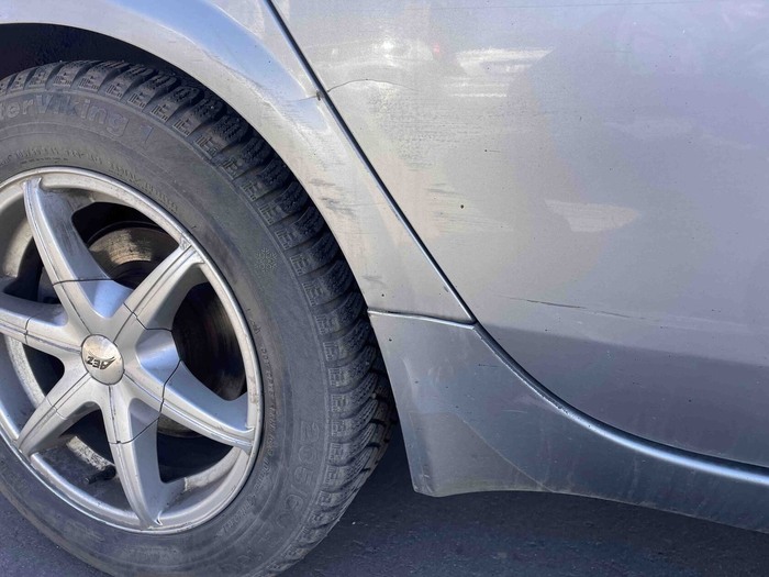 Небольшая притертость на правой стороне пассажирской двери и заднего крыла.