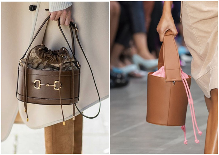 Актуальная альтернатива это жёсткая bucket-bag, та самая сумка-ведро, только в минималистичном исполнении. Здесь остаётся узнаваемая форма, но она подана в современном ключе: плотное дно, чёткие линии, гладкая кожа и аккуратная фурнитура. Такая модель легко вписывается и в деловой стиль, и в повседневный. С плащом и брюками-палаццо bucket смотрится строго и современно, с платьем миди и сапогами- женственно, а с oversize-жакетом и джинсами- свежо и стильно.
