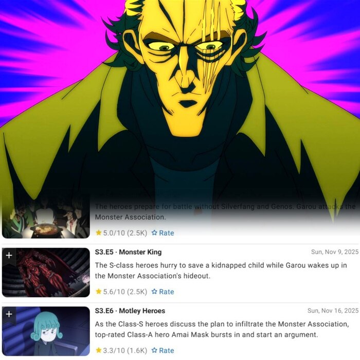 Неделю за неделей 3 сезон Ванпанчмена продолжает свой эпичный полёт в пропасть. Искать хорошее становится всё сложнее и с выходом 6-го эпизода, сериал обновил отрицательный рекорд, взяв героические 3.3/10 на IMDB.
