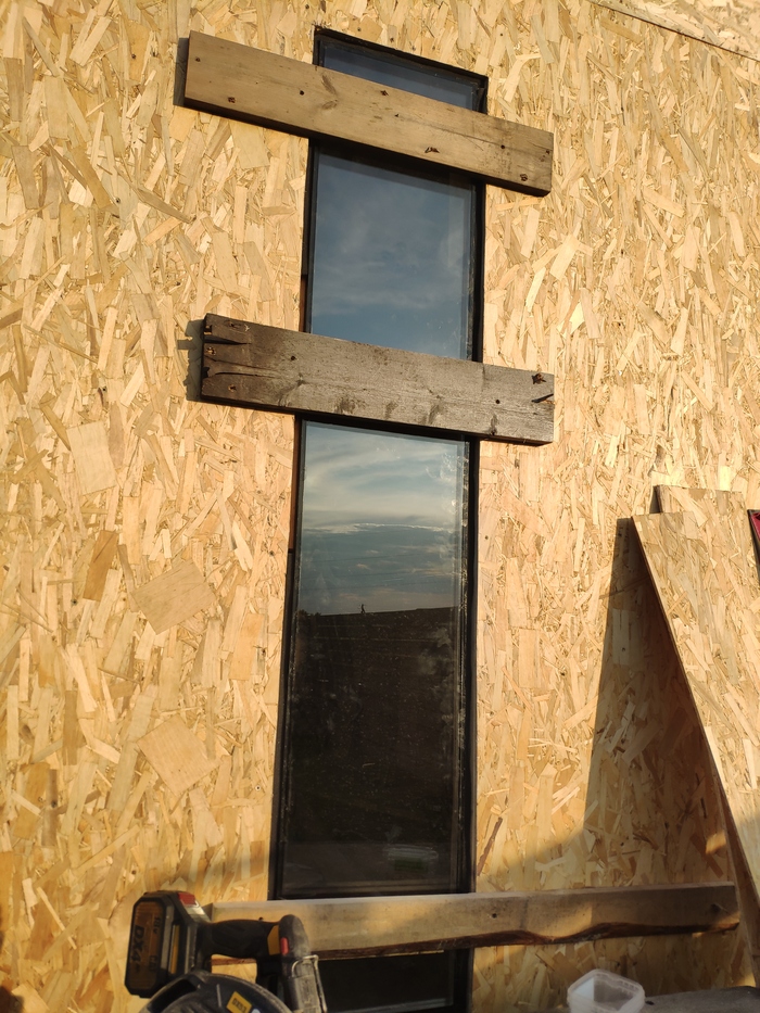Привезли двери. Очень тяжёлые. Установил сам с помощью подпорок и рычагов.
