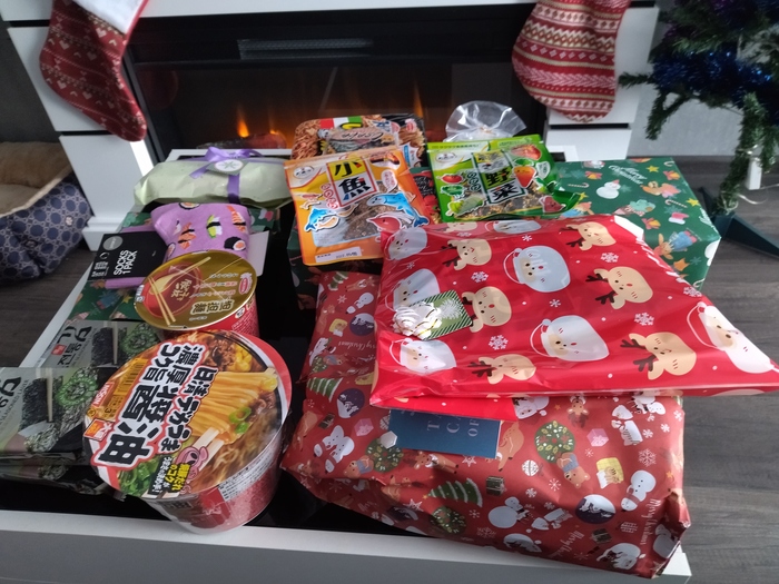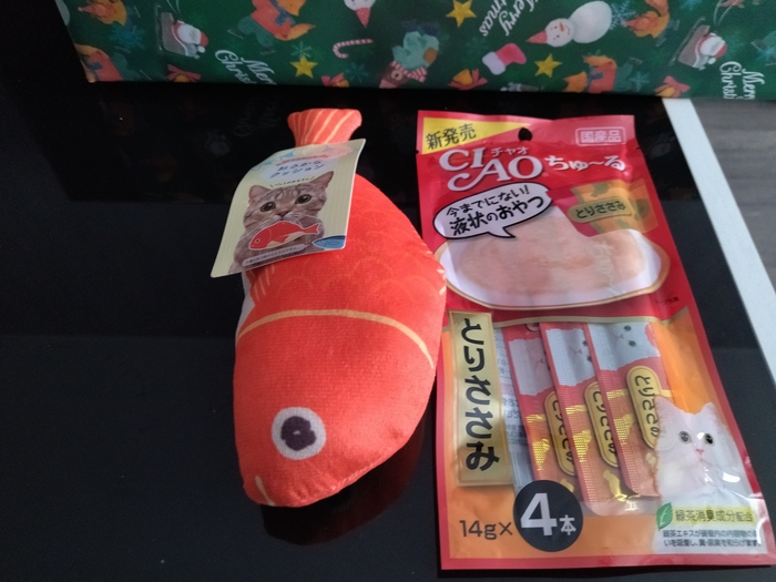 Календарь и пазл и котами, чай и сладости, книги и красивая открытка с пожеланиями, а также новогодний колокольчик и душевное письмо, которые пока ещё стараюсь прочитать. 😄 Но уверена скоро получится! :)