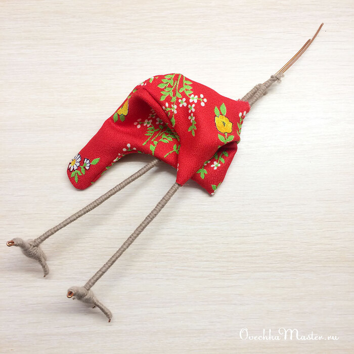 Такая конструкция достаточно хрупкая. Но после того, как все плотно фиксируется нитками, получается прочная, устойчивая нога!