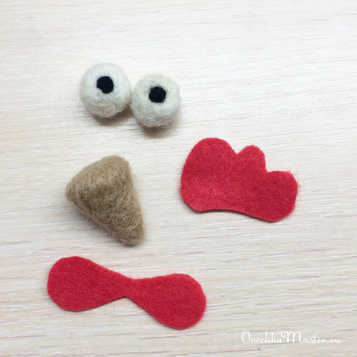 Гребешок и бородку вырезала из мягкого, толстого фетра (толщина 2 мм).
