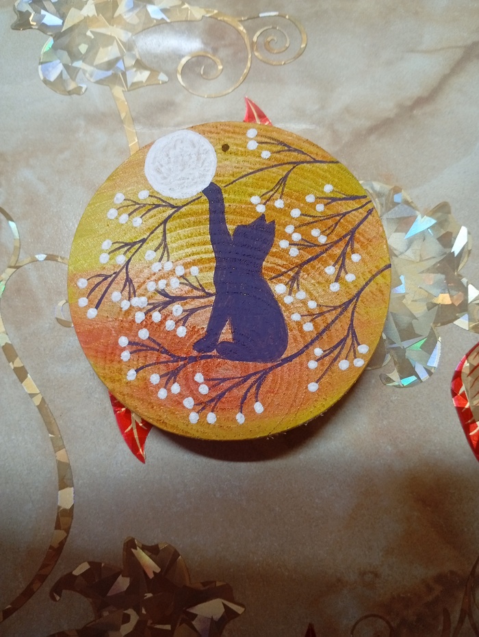 Новый год не за горами. Моё хобби - рисование по дереву. Сейчас готовлю новогодние украшения из спилов дерева, акриловая краска и акриловый лак. Ниточку продеваю в отверстие и можно украшать ёлку))).