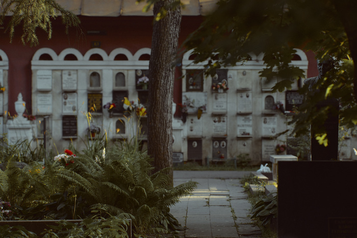 Можете себе вообразить, что человек, решивший посетить этот исторический некрополь увидит далеко не всё. В конце кладбища, в стене окружающей его, есть маленькая едва приметная дверца с табличкой " Не входить". Случайный посетитель пройдёт мимо, решив что там какое-нибудь подсобное помещение. Я слонялась по кладбищу в поисках кого-то, кто сможет мне рассказать: как оказаться похороненным здесь, если ты не артист и не политик. В процессе я добрела до той самой дверцы, которая оказалась приоткрыта и за ней я увидела ещё одно кладбище. Так как на уже известной территории я не встретила никого из сотрудников кладбища то я решила поискать их за этой дверью.