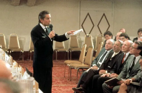 Идеологическим сердцем фильма стала сцена выступления Гекко на собрании акционеров. В этот момент кино дало бирже не просто образ, а этическое оправдание: