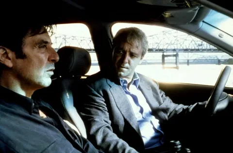 Камера Майкла Манна, с её холодными синими тонами и гипнотическим вниманием к деталям (мигание автоответчика, звук факса, мерцание экрана), ловит «тихий гул» информации, становящейся капиталом. Диалог между Уигандом и журналистом Лоуэлл Бергманом (Аль Пачино) раскрывает новый манифест эпохи: