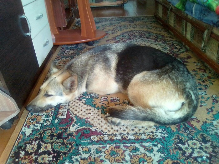 Отмыли с антипаразитным шампунем, накормили, напоили, спать уложили. Теперь ищем дом с добрыми руками или передержку.