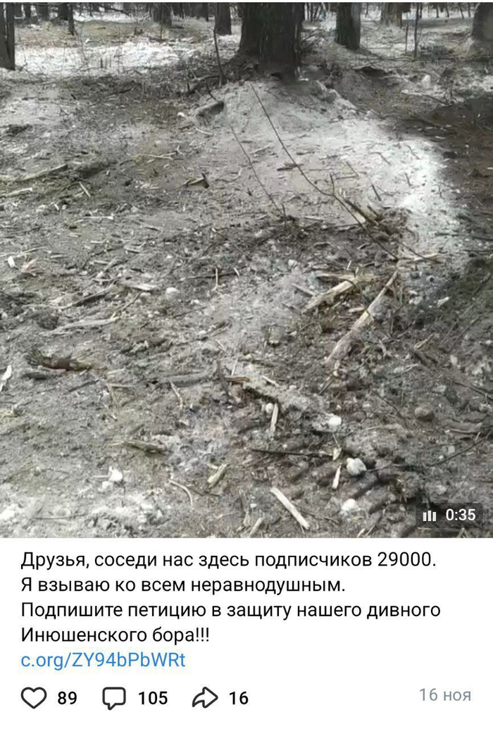 13 числа того же месяца жители заметили тяжелую технику, варварски вырубающая значительные участки леса, это вызвало тревогу и многочисленные обсуждения, а так же запуск петиции(16.11.25)