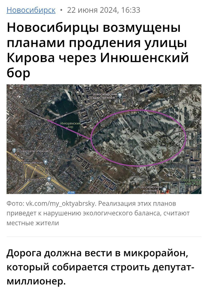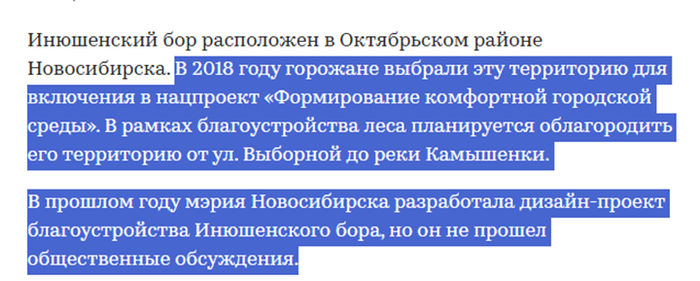 Прошлый пост пал, но мы не сдаемся, приветствуем еще раз жителей Новосибирска и всех заинтересовавшихся! Хочу сделать отступление, из за ограничения в медиа пришлось убрать некоторые скриншоты - большинство информации и подтверждений в открытом доступе. Мы не против дорог, мы за принятие альтернатив, что не будут уничтожать бор, в статье нет оскорблений, только разбор документов и скриншоты публичных заявлений, а так же комментарии к ним, многое подкрепляется ссылками. Приятного чтения!