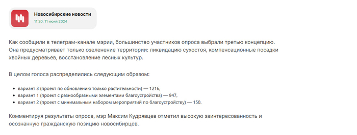 Отсюда следует - воля народа была растоптана еще до того, как была официально закреплена. Факты кричат о том, что варварская вырубка планировалась уже в 2023 году, ПОСЛЕ утверждения выбранного горожанами щадящего варианта благоустройства и ДО дальнейшего голосования в 2024г.