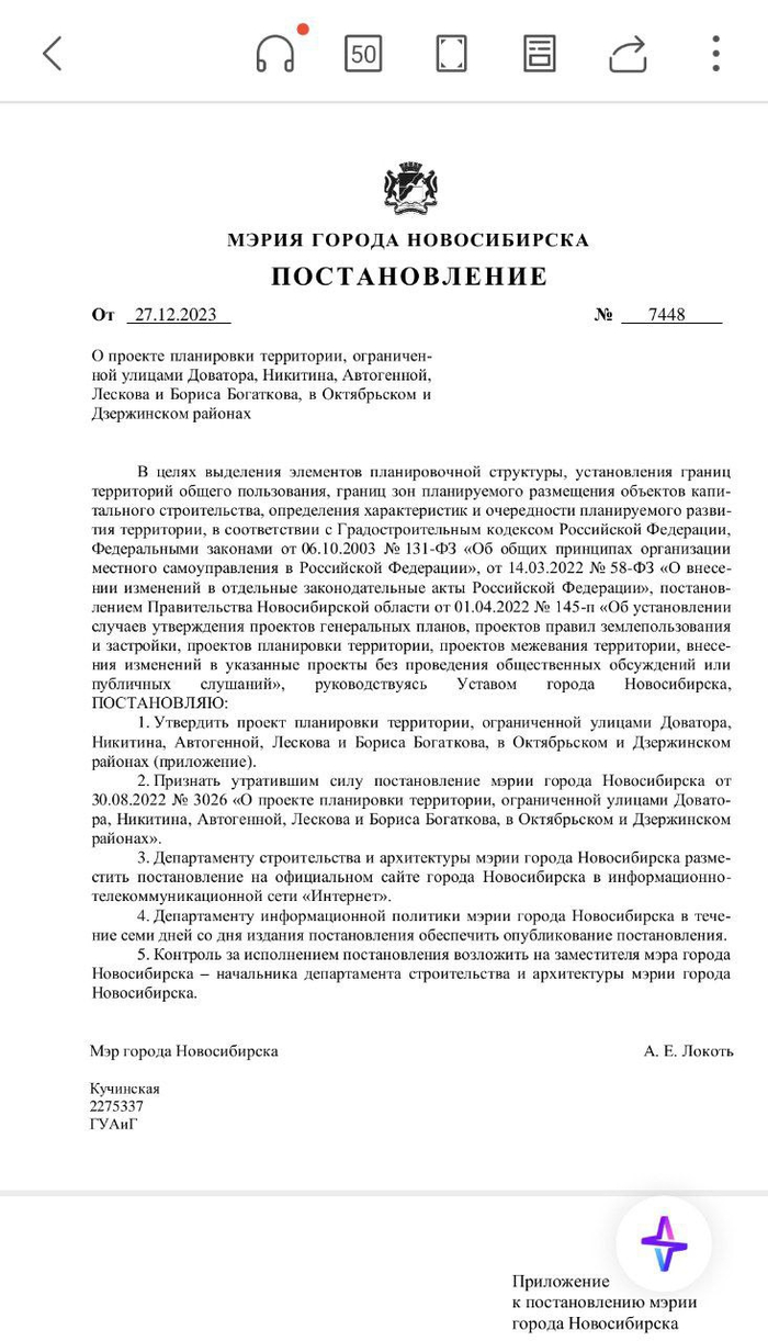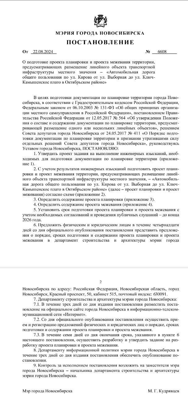 Далее, в конце декабря 2023 года выходит постановление мэрии с планами застройки на Ключ-Камышенском плато, для которого и требуется дороги: