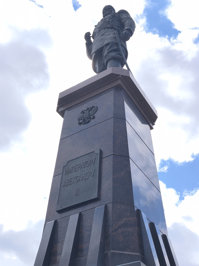Необычный ракурс на памятник, но по другому нельзя, за спиной строительные заборы