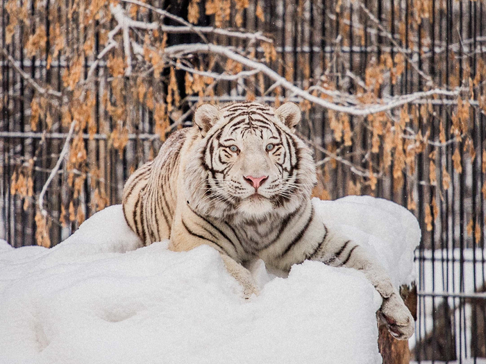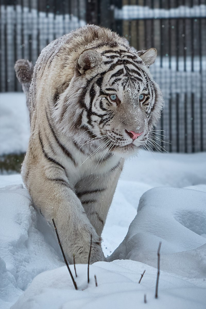 Несмотря на то, что естественный ареал обитания бенгальских тигров — Северная и Центральная Индия, Непал, Бирма и Бангладеш, Кови прекрасно адаптировался к сибирскому климату! Он с удовольствием прогуливается по заснеженному вольеру, демонстрируя свою природную грацию.