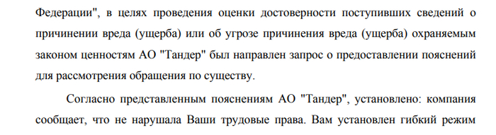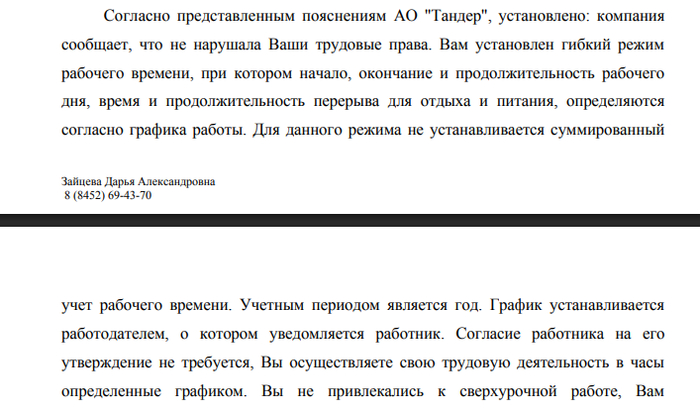 Это прямое искажение фактов и защита права «Тандера» на произвол , игнорируя моё право на достойную оплату и жизнь (ст. 102, 103 ТК РФ).