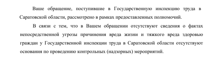 Естественно меня не удовлетворили её объяснения и я полезла в интернет изучать статьи ТК РФ. И выяснила, что госпожа Зайцева, мягко говоря., лукавит, ибо есть статья 357 ТК РФ, где описаны полномочия инспектора ГИТа, в том числе право собирать доказательства и статья 360 ТК РФ, которая в прямую обязывает инспекцию проводить расследование, если есть факт угрозы здоровью и жизни. Мне казалось, что два вызова бригады скрой помощи на рабочее место, таким фактом являются — наивная!