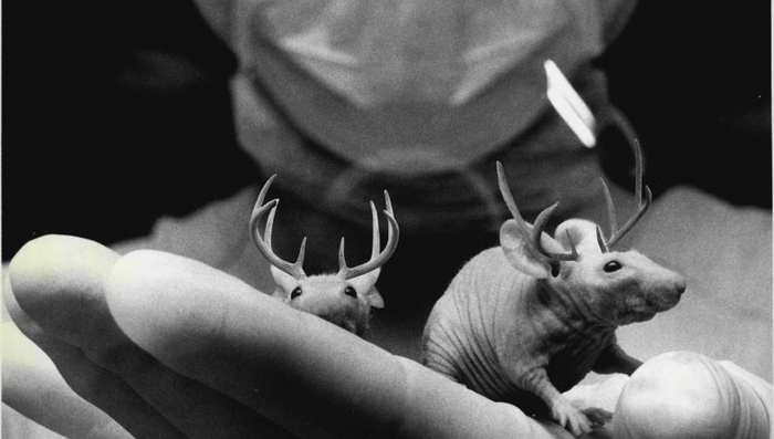Согласно статье, опубликованной в журнале «Science», группе китайских ученых под руководством Тоа Циня удалось вырастить «мини-рога» у мышей, вставив гены оленя в геномы грызунов.