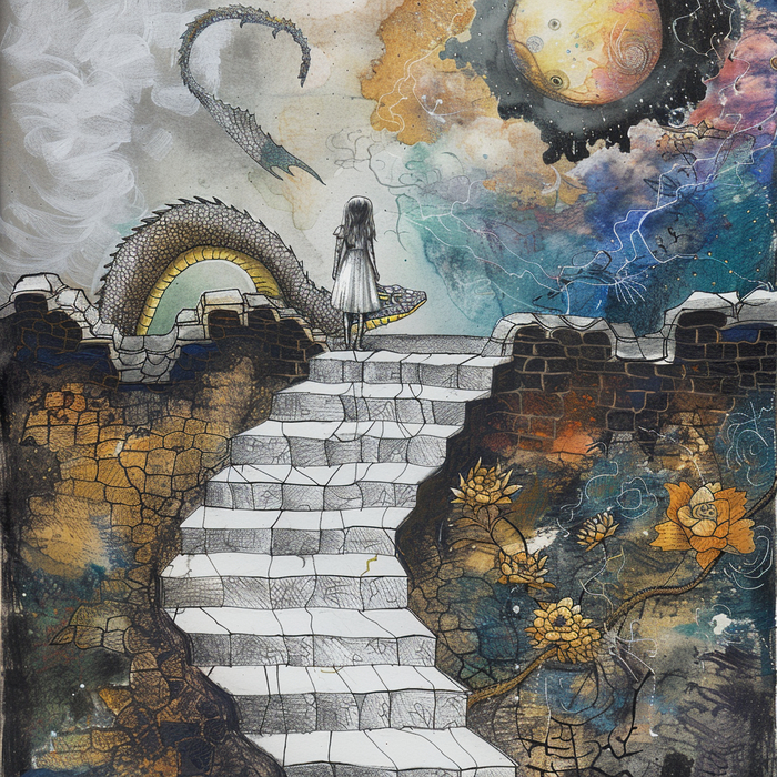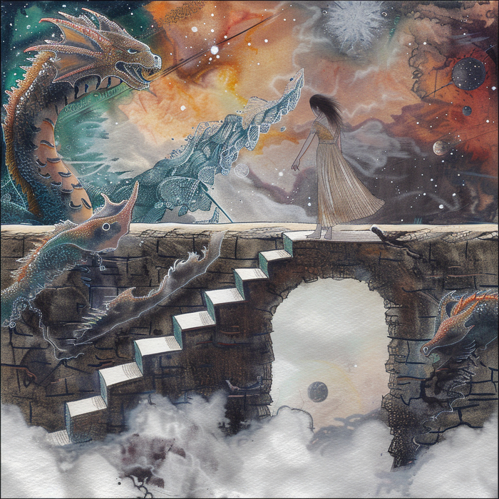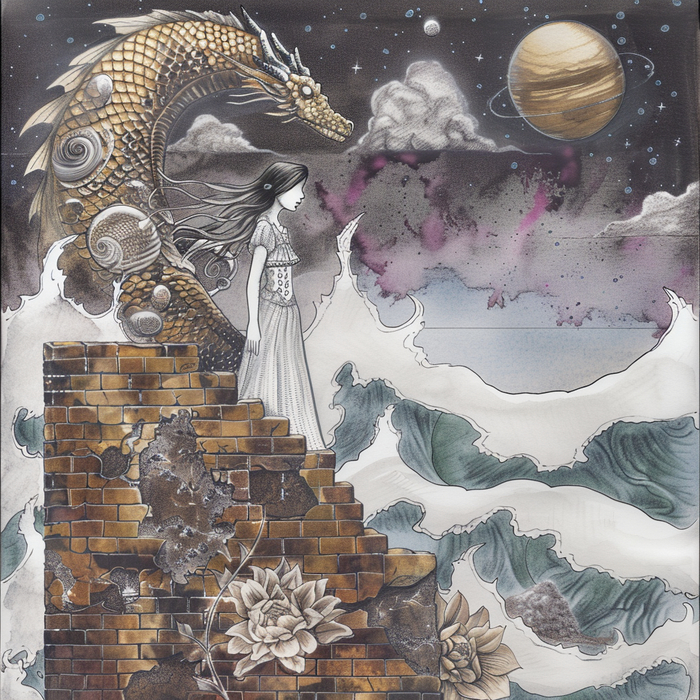 Над картинкой с улиткой пришлось долго поработать. Никак мне не давался желаемый результат. Мне хотелось получить нечто среднее между персонажами из фильма "Бесконечная история". Улиткой и огромной черепахой на болоте. При этом чтобы было что-то новое. В итоге, перебрав множество вариантов и истратив кучу попыток, остановился на таком вот изображении. Девочка по имени Рита и мудрая улитка. Своего рода хранилище информации. Самая главная деталь это часы на дереве. Я бы конечно добавил стрелок или убрал их вовсе. Своего рода символ путаницы и неразберихи во взаимосвязи вещей в том, выдуманном мире.