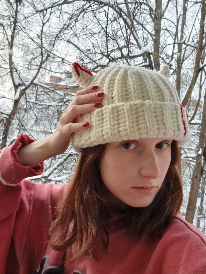 Давно хотела шапку с рожками но вот только сейчас время освободилось.