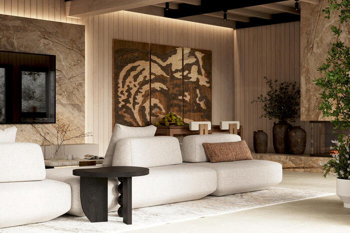 Стиль джапанди держит позиции уже несколько лет, но теперь он перешел в люксовый сегмент. Это не просто минимализм и дерево. Это сочетание японской философии с премиальными материалами — камень, лен, стекло, латунь. Интерьер выглядит спокойным, но в каждой детали чувствуется качество и тепло фактур.