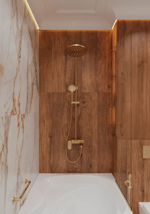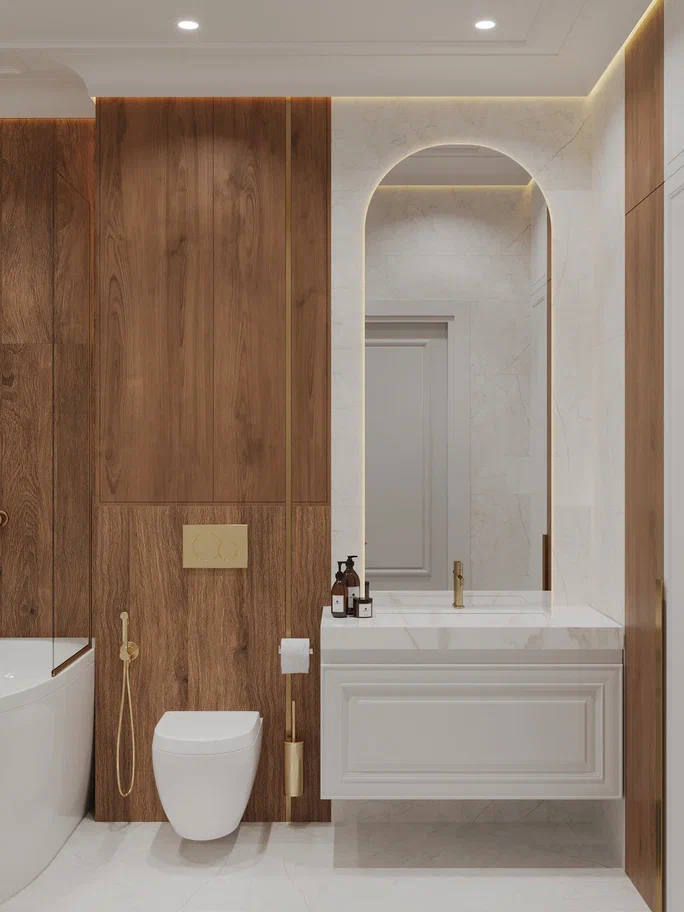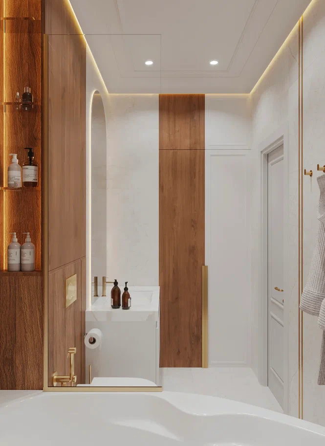 Люстры уходят в прошлое. Теперь свет живет в панелях, под ступенями, в цоколях мебели. Он мягко выделяет зоны, добавляет глубины. В ванной уже не просто лампы — целый сценарий: утро, вечер, релакс. С подсветкой, подогревом, музыкой.