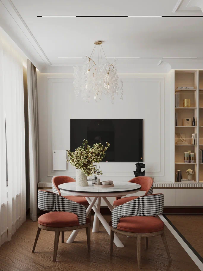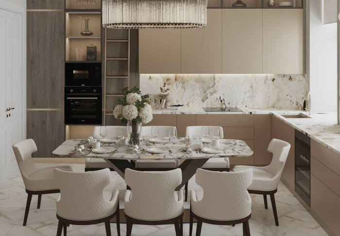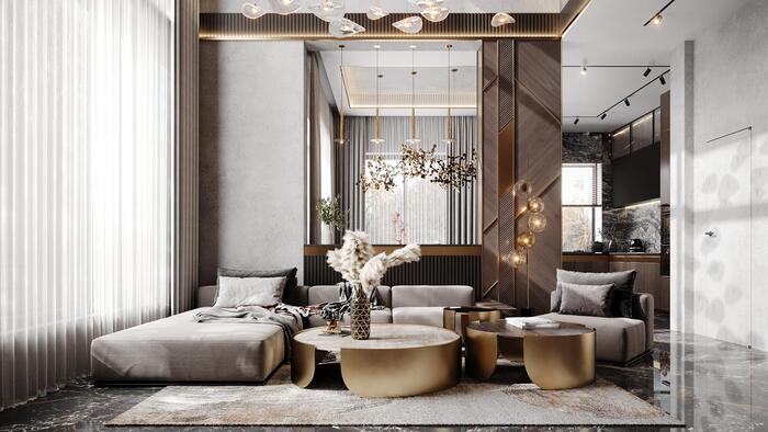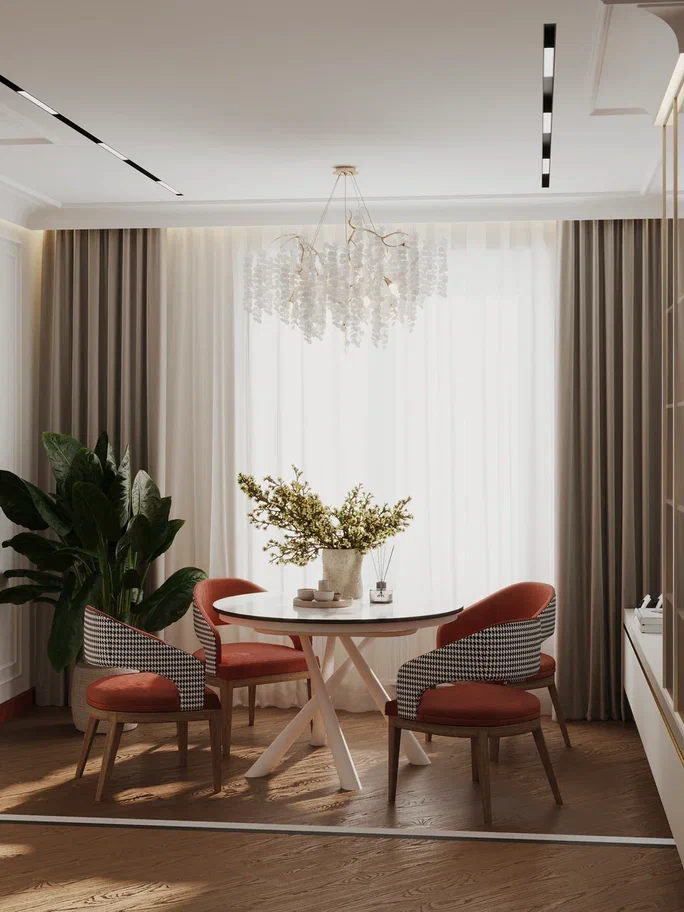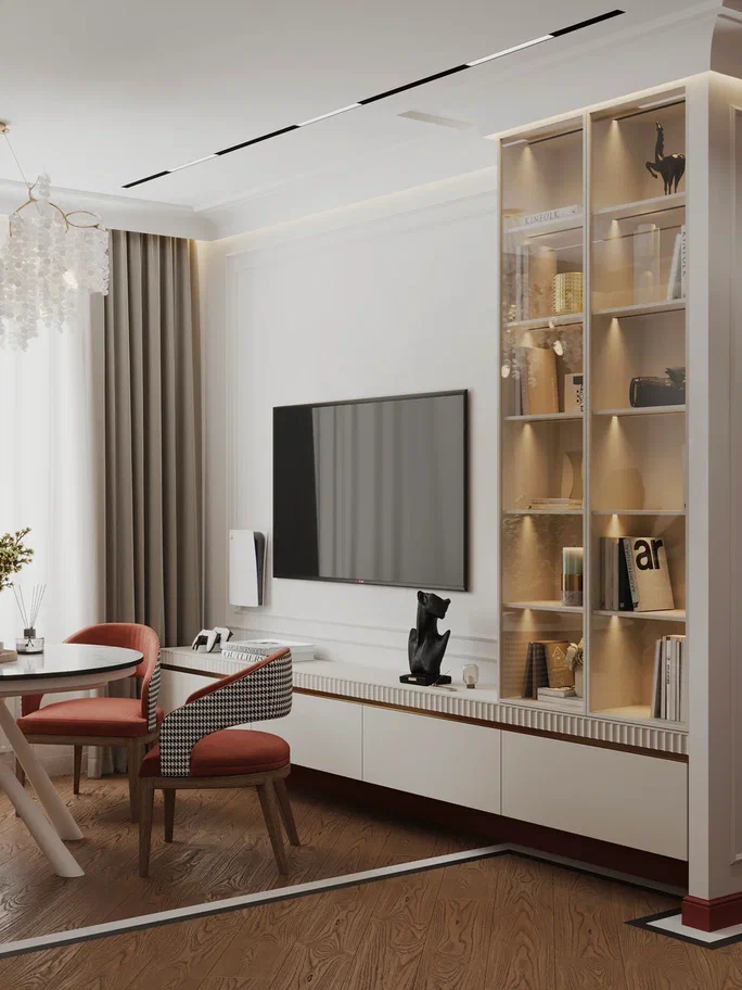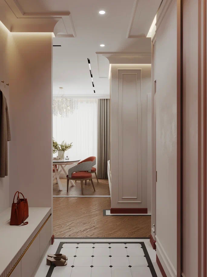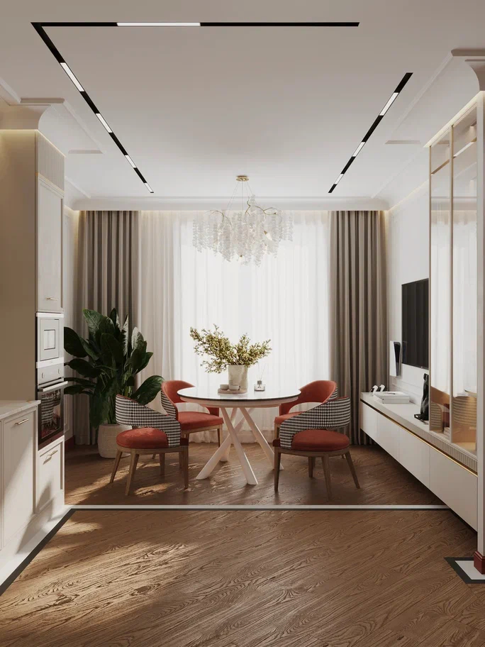 В премиум-проектах 2025 года дизайнеры все чаще миксуют ар-деко с минимализмом: четкая структура, дорогие материалы и спокойная палитра. Такой подход делает интерьер статусным, но не вычурным.