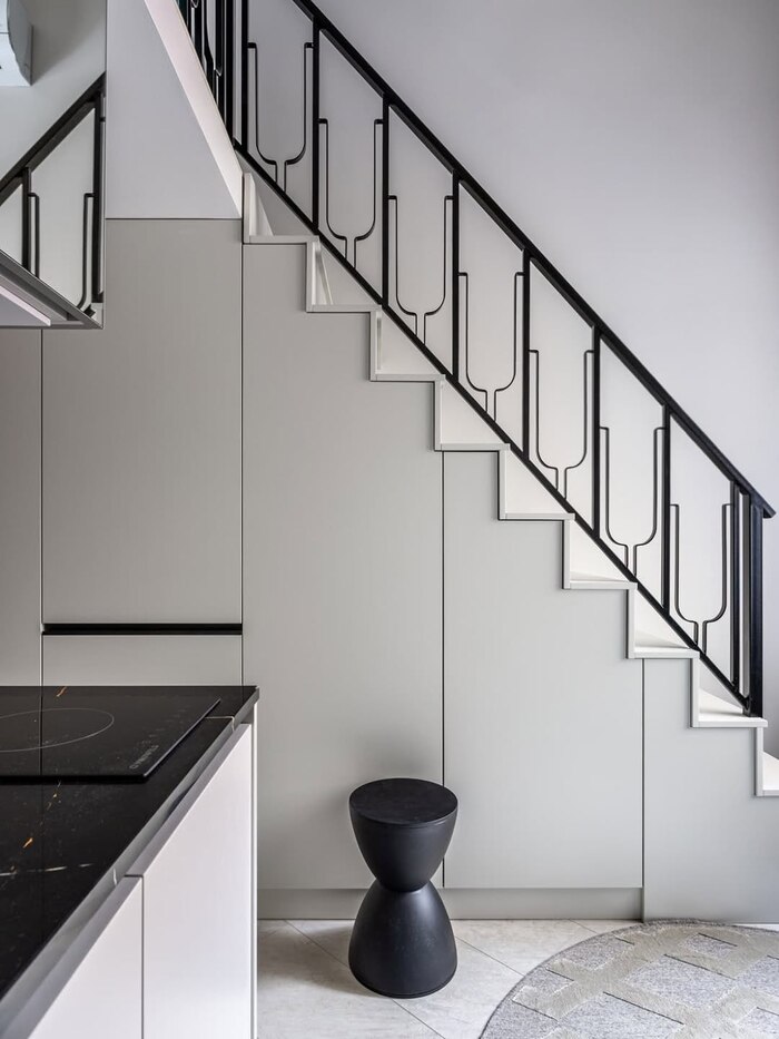 Такой интерьер строится на нюансах. Белый — не чистый, а теплый. Серый — с примесью графита. Сочетание мягких контрастов создает эффект тишины. В этом и есть премиум.