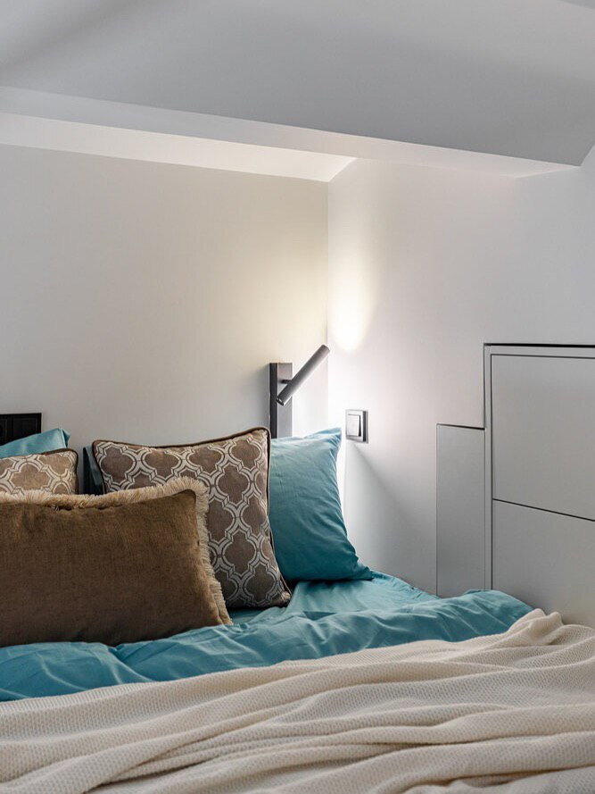 Умный дом и автоматизация. Сценарии настроения, утренние ритуалы, контроль климата. Все управляется через один планшет или голосом. Нажатием кнопки можно опустить шторы, включить подсветку у кровати и задать нужную температуру.
