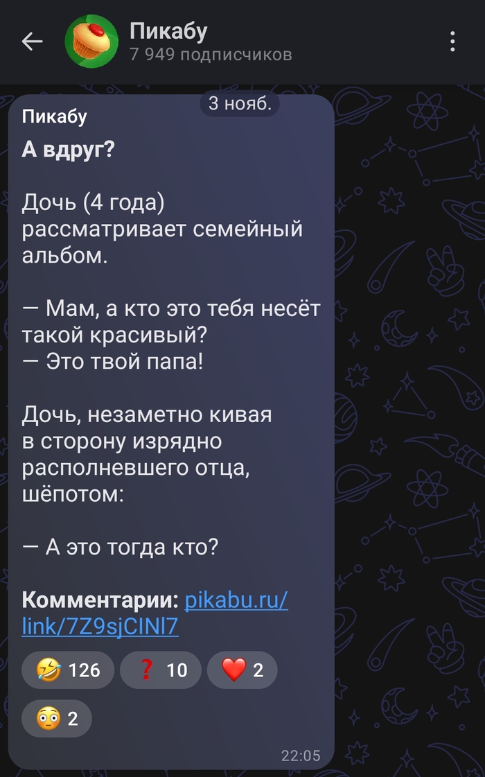 Справа появилась пустота. В результате чуть добавилось строк. Но Телеграм обосновал такую пустоту. Смотрим на правый нижний угол картинки. Кнопка со стрелкой для пересылки сообщения. Т.е. освободили именно столько места, сколько нужно для кнопки. Логично, понятно, ставим лайк.
