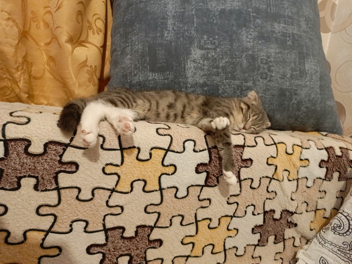 После обхода квартир, объявлений на подъездах всех ближайших домов и распространения информации в группах района, его предыдущий хозяин не объявился. У кота с рождения есть особенность - у него сросшиеся пальчики на передних лапках. Это не мешает ему бегать и прыгать. Он очень ласковый и обожает, когда его гладят.