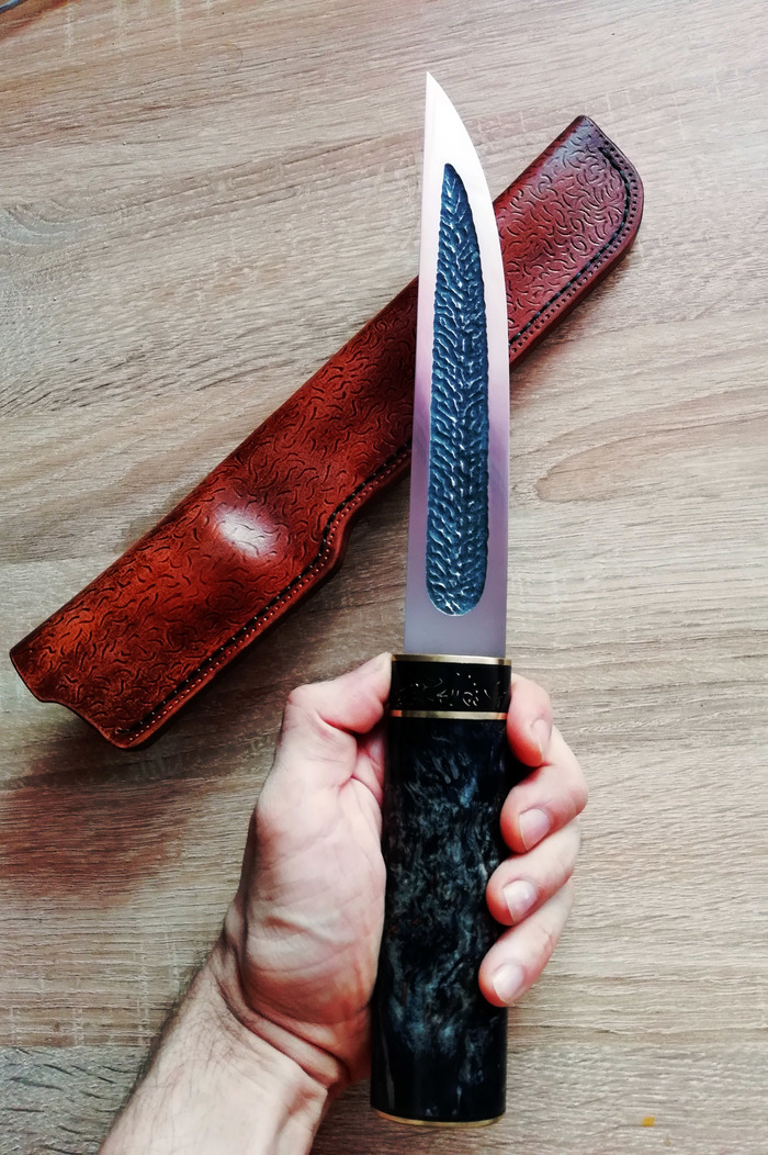 Форма ножен позволяет надежно зафиксировать посаженый в них нож.