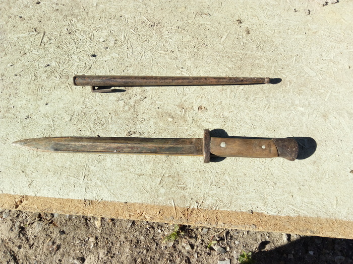 Идея была интересная - сложенный штык был достаточен для мелких бытовых солдатских задач - открыть банку с олениной тушёнкой, вскрыть цинк с патронами, обстрогать деревяшку. В разложенном и примкнутом к стволу - готов к рукопашной. Идею, впрочем, зарубили - как я понимаю, потому что массово такие штыки было делать сложнее и дороже, чем те, что в итоге пошли в серию. Обычная история для армии, ничего удивительного. Так что такие складные штыки сейчас можно увидеть разве что в музеях, да в частных коллекциях, совсем уж иногда - на распродажах военного барахла и антиквариата, на которых бывает камрад Maverick00