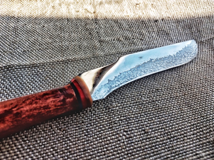 Как вы видите, рабочая часть клинка, то есть, та часть, которой осуществляется рез, не доходит до конца, эта особенность образует так называемую пяту.