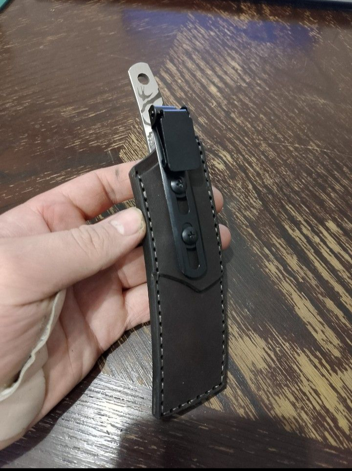Ножны под них сшил отдельно. Из кожи 3 мм. Со съемной клипсой Ulti Clip. Постарался сохранить антураж и сделать аккуратно.
