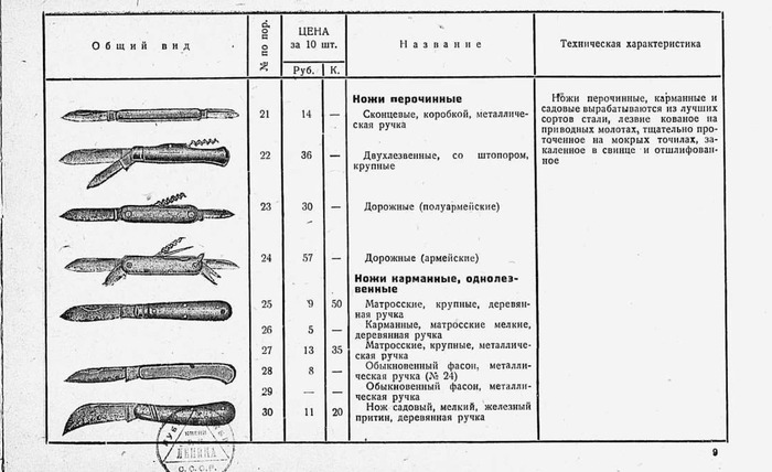 Прейскурант ножево-инструментальных изделий 1933 года