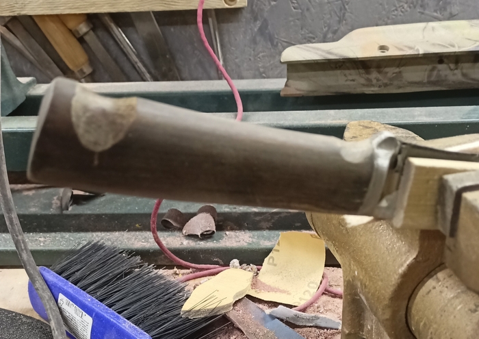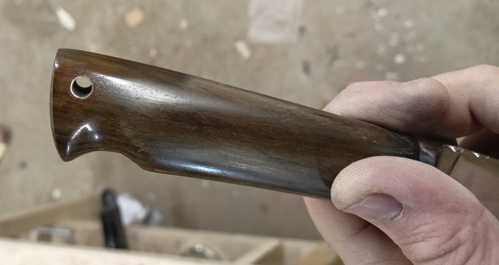 Рукоять оказалась из ореха, пропитанное льнянкой.