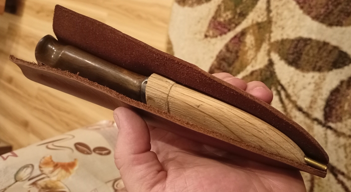 Ножны получились хорошими. Когда убираешь нож, в конце происходит благородный щелчок.