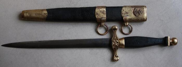 Кортик для церемоний. Его делают с инкрустациями, позолотой, гербами и декоративной гравировкой, подчёркивая торжественный характер.Наградной