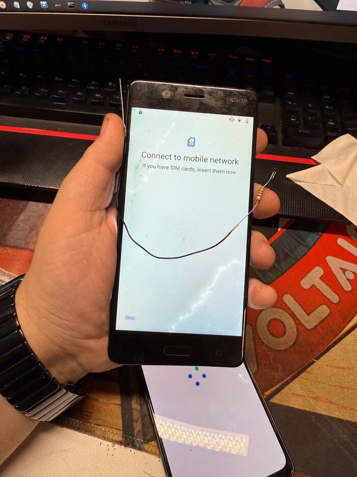 Нужно взять проволоку длинной 3-5 см, сходить в радиодетали купить резистор с сопротивлением от 10 до 50 ом, запаять его посередине нашей проволоки. Одну часть нужно замкнуть на минус, а вторую замкнуть на тестовую точку, и подключить телефон к пк, обычным кабелем.