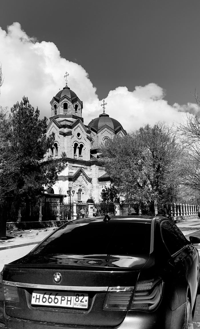 Человек до такой степени стыдится флага России, что заклеивает его. Машина стоит возле рынка, ставлю на черное