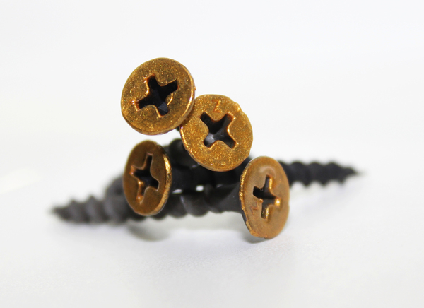 Сами саморезы, точнее шляпки у них, я тоже покрасила в золото, поз цвет циферок, и покрыла глянцевым лаком:
